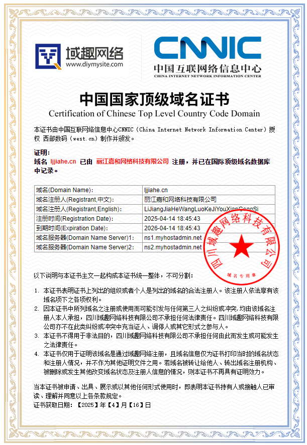 时间:2025/4/16 17:34:39 公司名:丽江嘉和网络科技有限公司 浏览量: