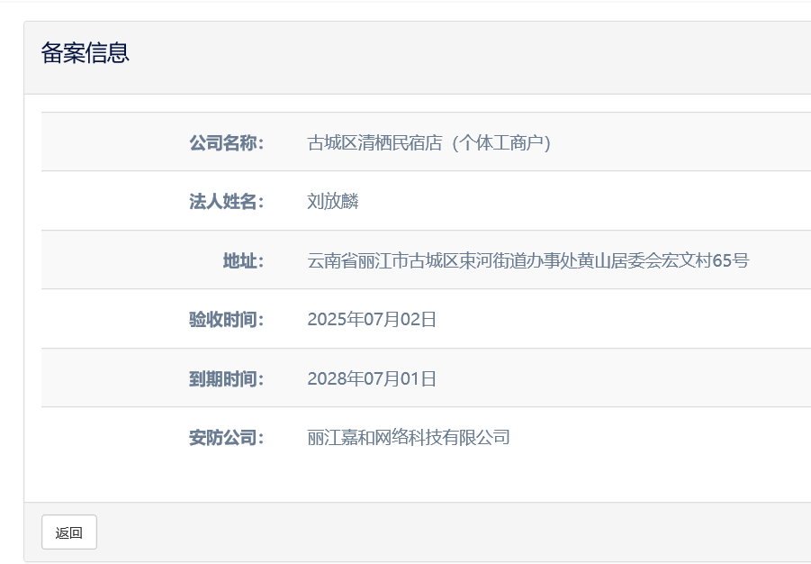 关于古城区麓逸民宿旅店(个体工商户)电子监控安防合格证下证通知