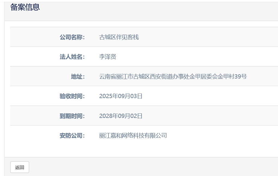关于古城区伴见客栈电子监控安防合格证下证通知