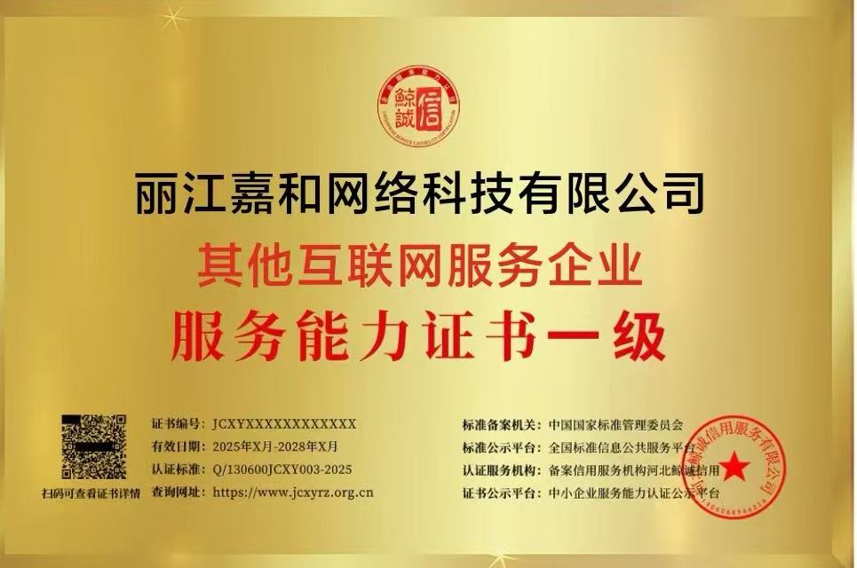 热烈庆祝我司荣获其他互联网服务企业服务能力证书一级称号