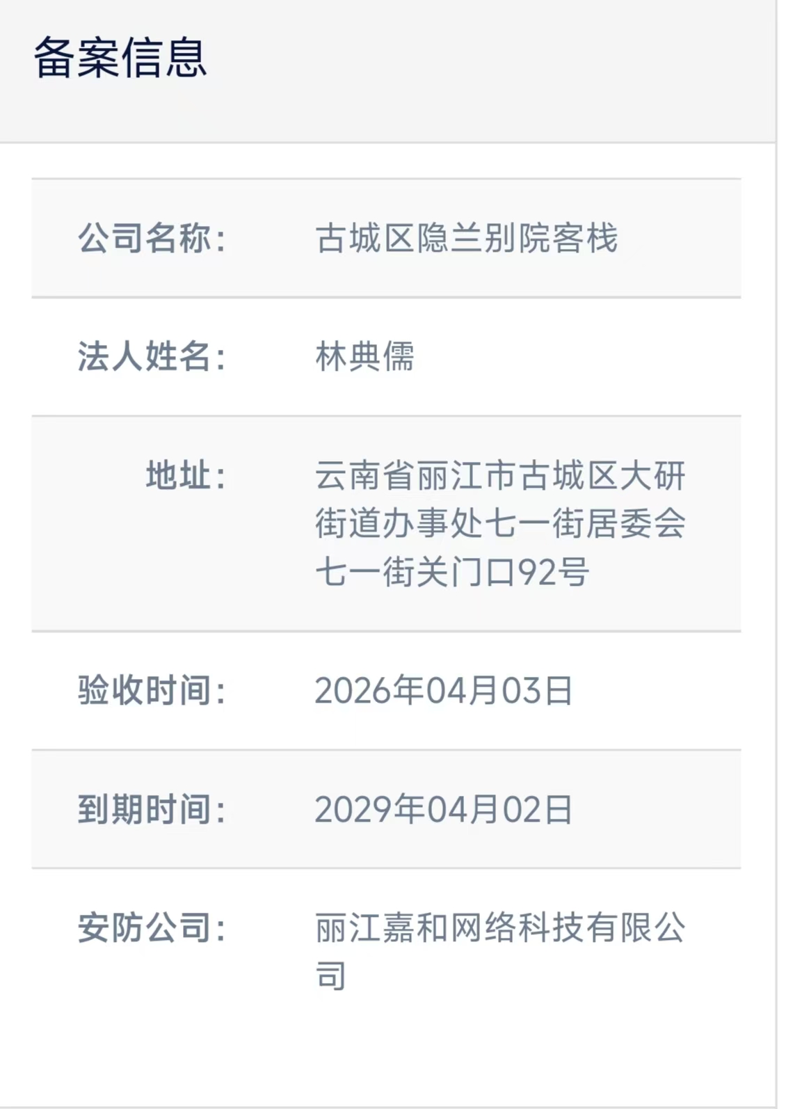 关于古城区隐兰别院客栈电子监控安防合格证下证通知