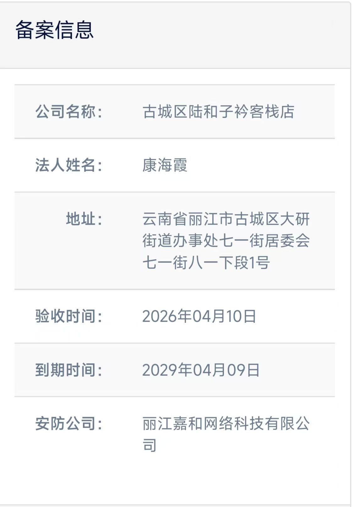 关于古城区隐兰别院客栈电子监控安防合格证下证通知