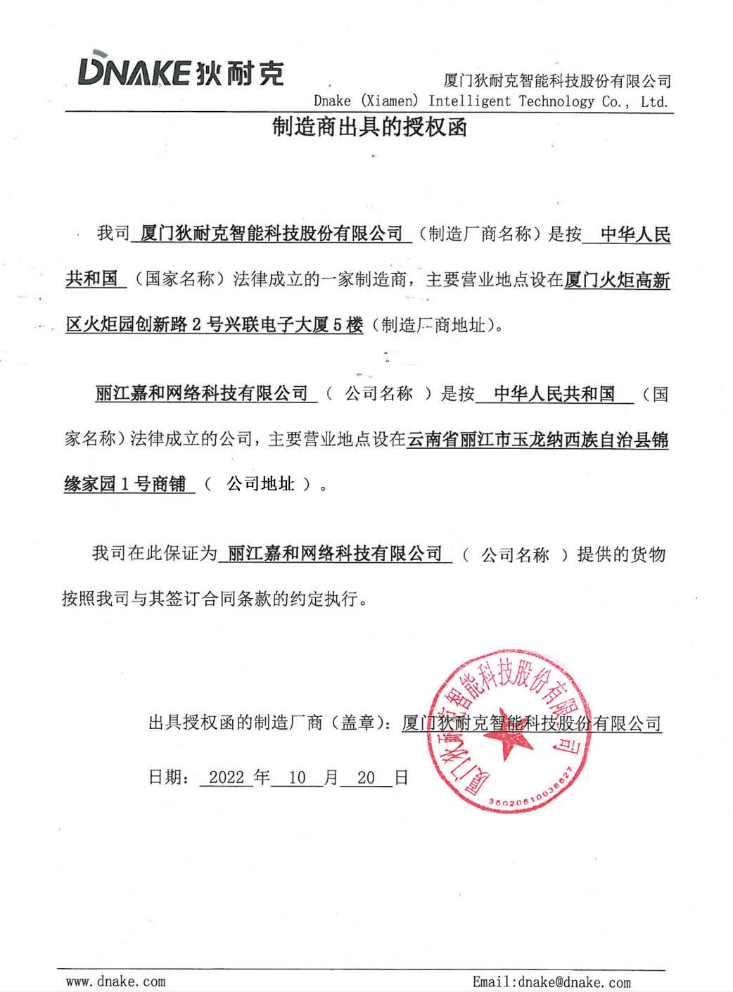 热烈庆祝我司与狄耐克达成战略合作(授权函)