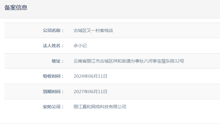 关于古城区麓逸民宿旅店(个体工商户)电子监控安防合格证下证通知