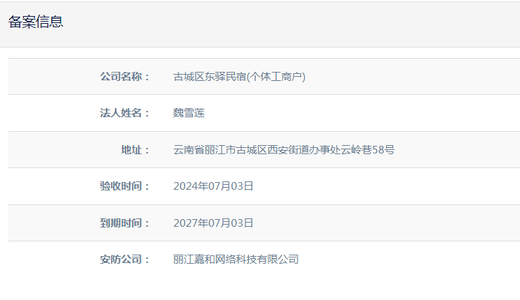 关于古城区一念时光民宿店(个体工商户)电子监控安防合格证下证通知