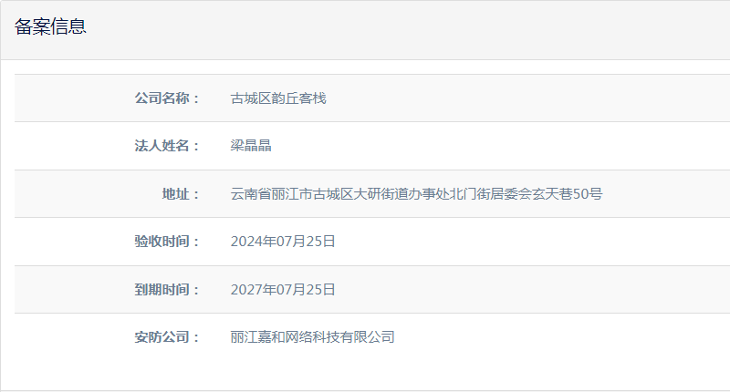 关于古城区韵丘客栈电子监控安防合格证下证通知