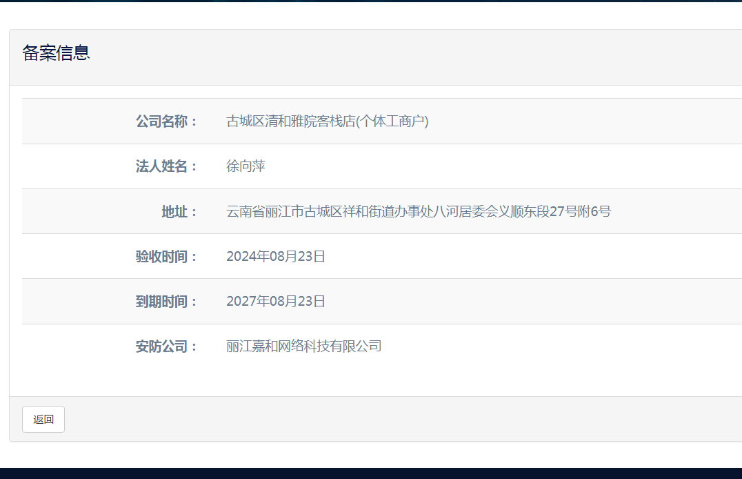 关于古城区清和雅院客栈店(个体工商户)电子监控安防合格证下证通知