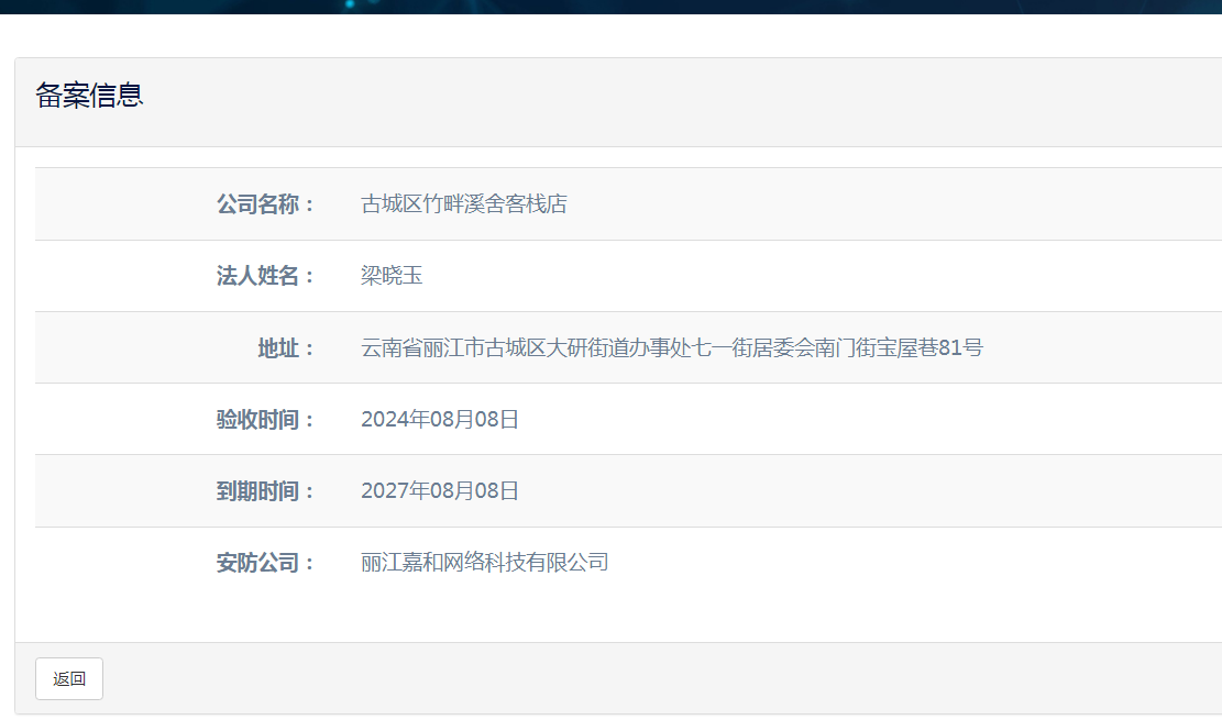 关于古城区竹畔溪舍客栈店电子监控安防合格证下证通知