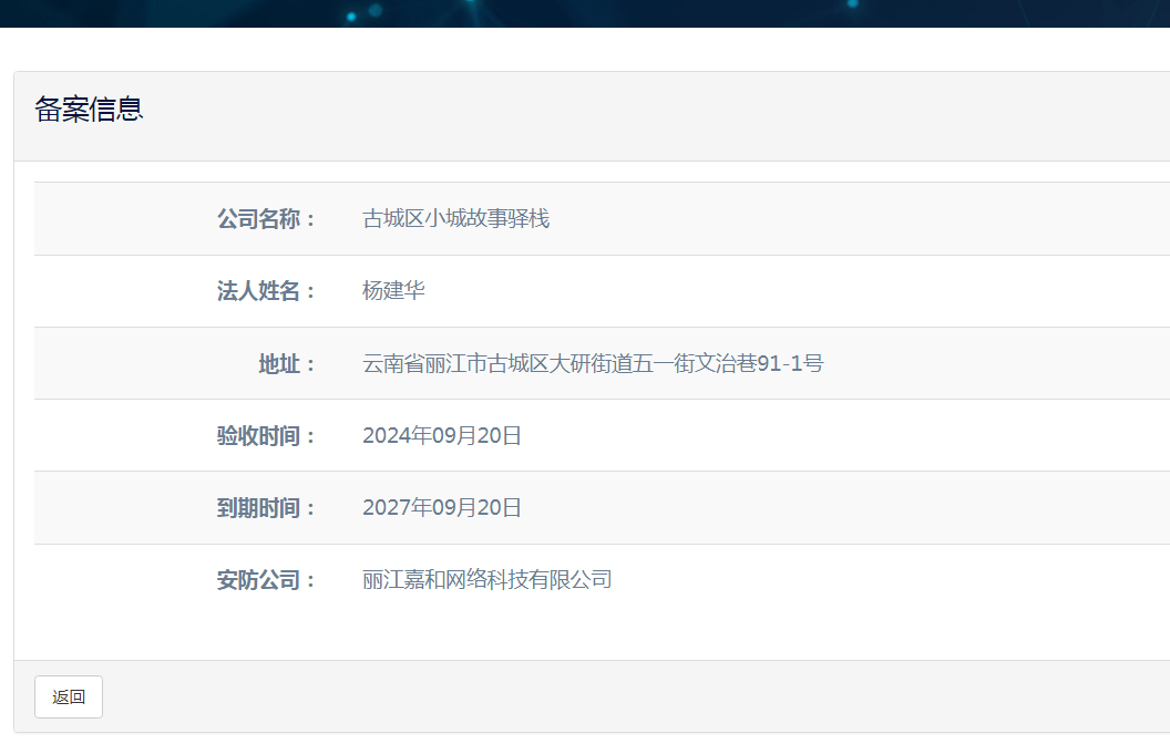 关于古城区小城故事驿栈电子监控安防合格证下证通知