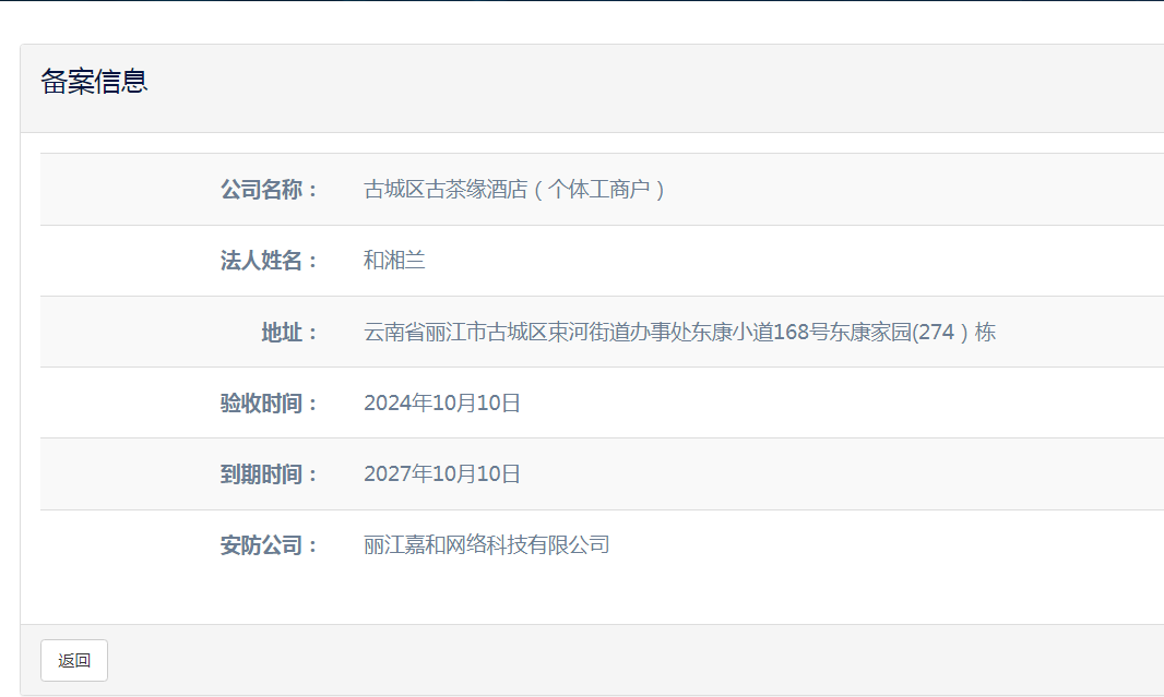 关于古城区麓逸民宿旅店(个体工商户)电子监控安防合格证下证通知