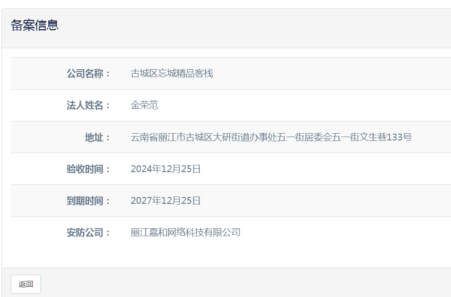 关于古城区忘城精品客栈电子监控安防合格证下证通知