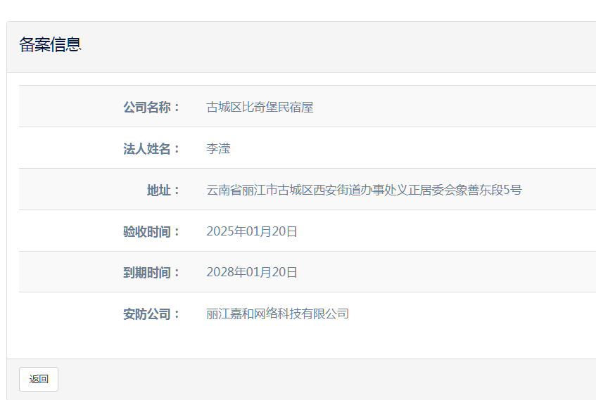 关于古城区比奇堡民宿屋电子监控安防合格证下证通知