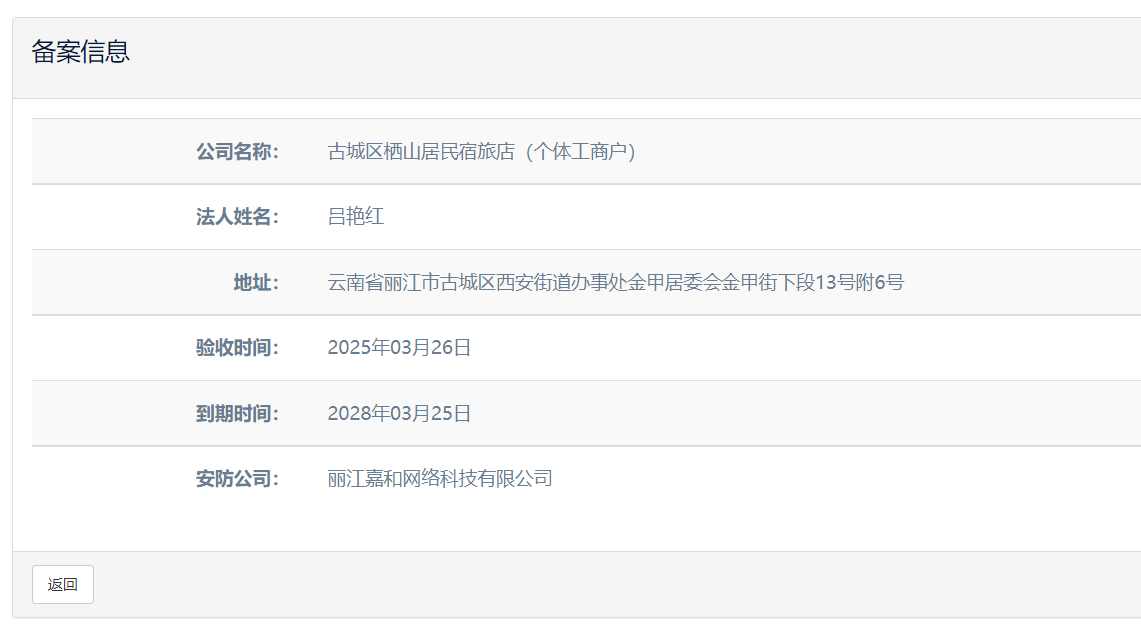 关于古城区栖山居民宿旅店(个体工商户)电子监控安防合格证下证通知