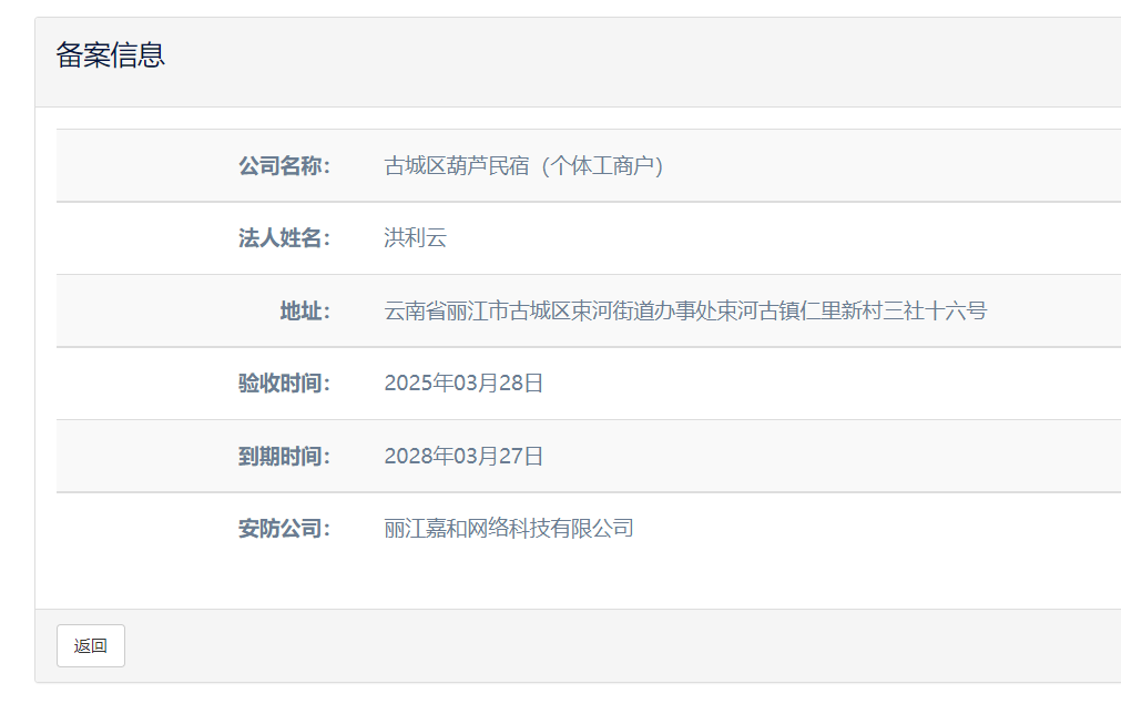 关于古城区麓逸民宿旅店(个体工商户)电子监控安防合格证下证通知