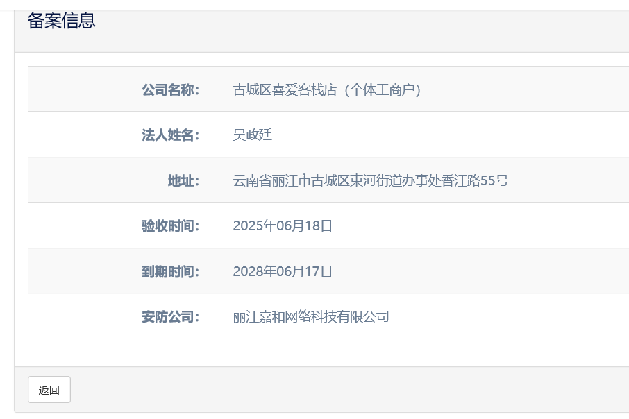 关于古城区喜爱客栈店(个体工商户)电子监控安防合格证下证通知