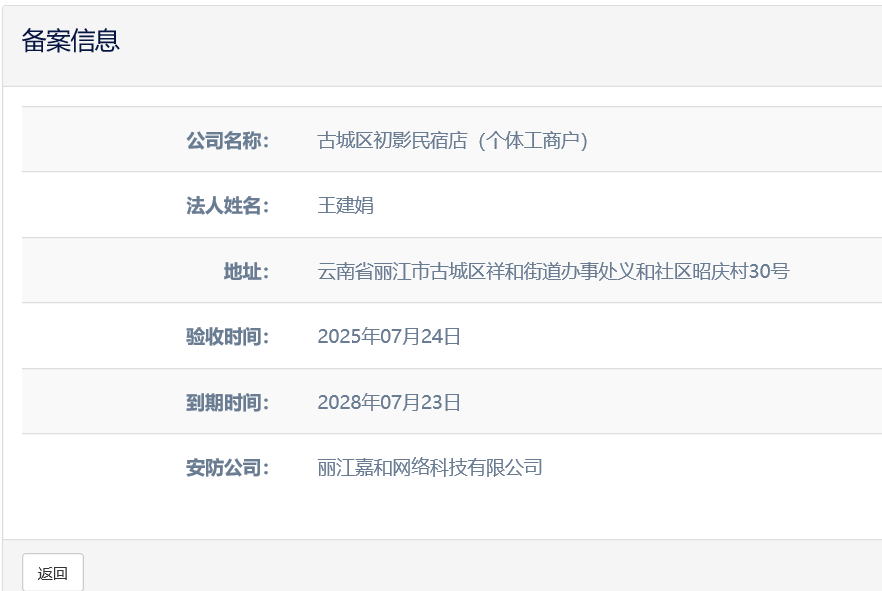 关于古城区初影民宿店(个体工商户)电子监控安防合格证下证通知