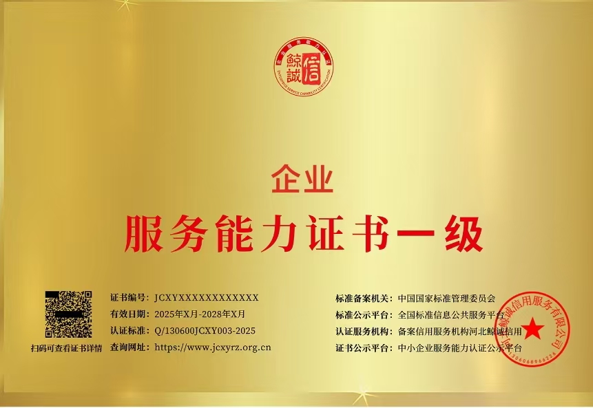关于热烈庆祝我司荣获企业服务能力证书一级